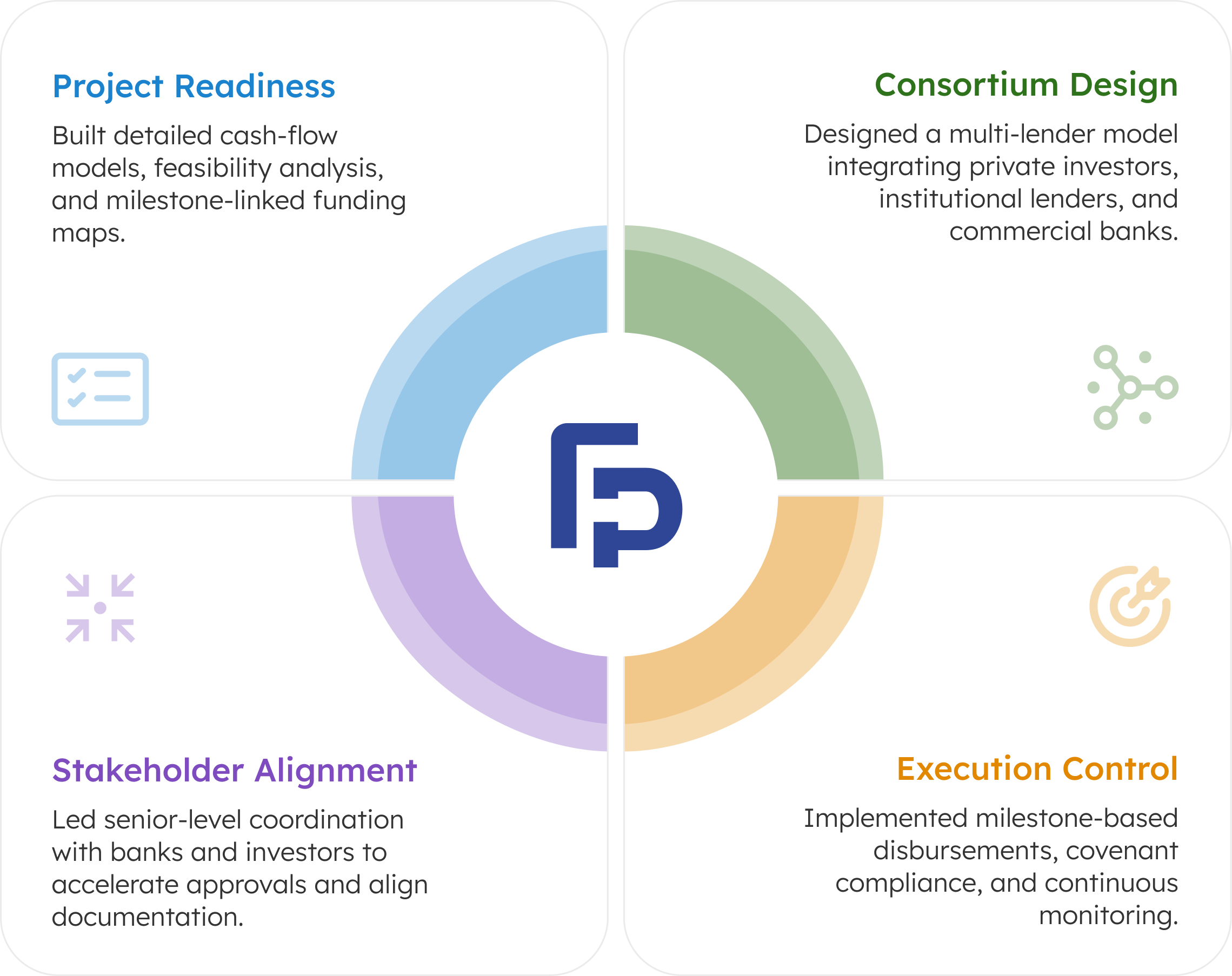 A multi-lender funding structure aligned disbursements to project milestones, pooled capital across banks and investors, and ensured steady liquidity for uninterrupted, on-time project delivery.